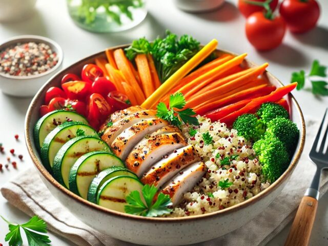 Gesunde Hähnchen-Quinoa-Bowl mit Gemüse Perfekt für eine ausgewogene Mahlzeit Zutaten (für 4 Portionen): • 4 Hähnchenbrustfilets • 300 g Quinoa • 2 Karotten • 2 Zucchini • 2 Paprika • 2 TL Olivenöl • Salz und Pfeffer nach Geschmack • 2 TL Paprikapulver • 2 TL Kreuzkümmel • 2 TL Zitronensaft • Frische Petersilie […]